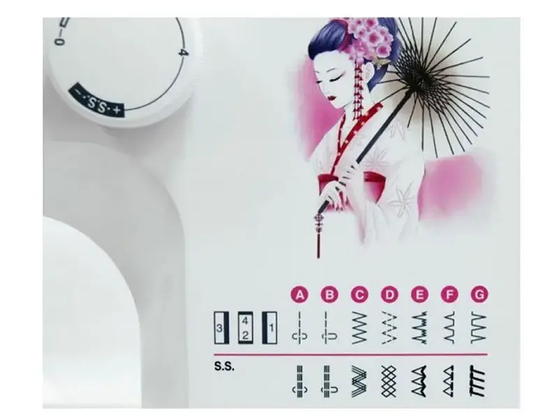 Комплектація: стандартні та спеціальні лапки, шпульки, викрутка, набір голок. Вироблено в Таїланді, гарантія — 1 рік.